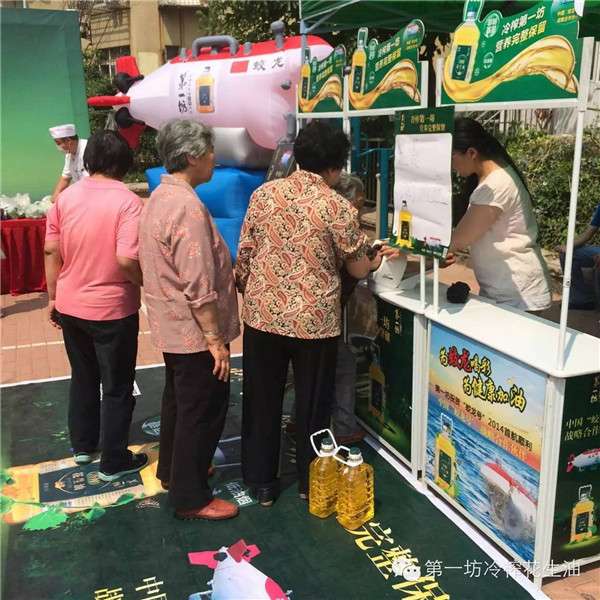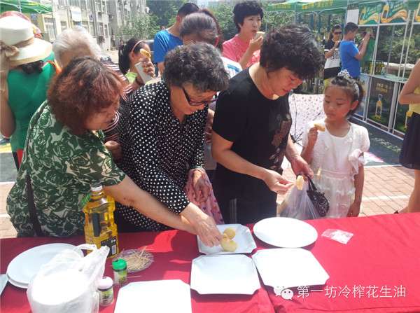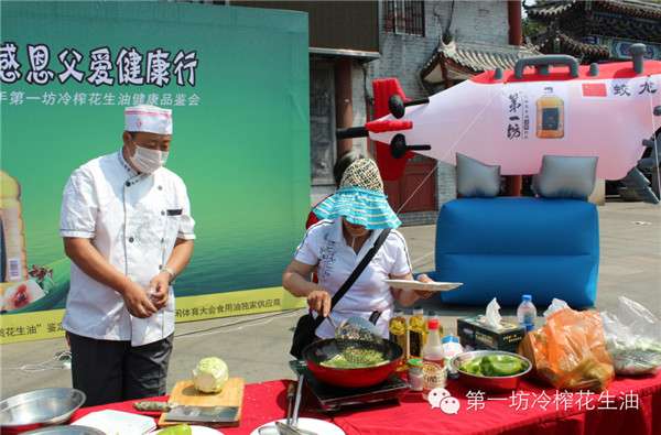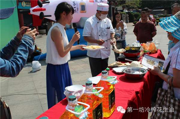 活动现场不仅有精彩的知识问答赢礼品、免费测血压及关注微信送花生油等互动环节,第一坊冷榨花生油更是现场邀请观众制作精美菜肴并免费品尝,积极传导第一坊冷榨花生油“健康、营养”的品牌理念。