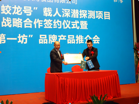 近日,“蛟龙号”载人潜水器探测项目与青岛长寿食品有限公司“第一坊”在京举行战略合作签约仪式,第一坊冷榨花生油成为“蛟龙号”载人潜水器探测项目官方食用油,各大媒体争相报道。